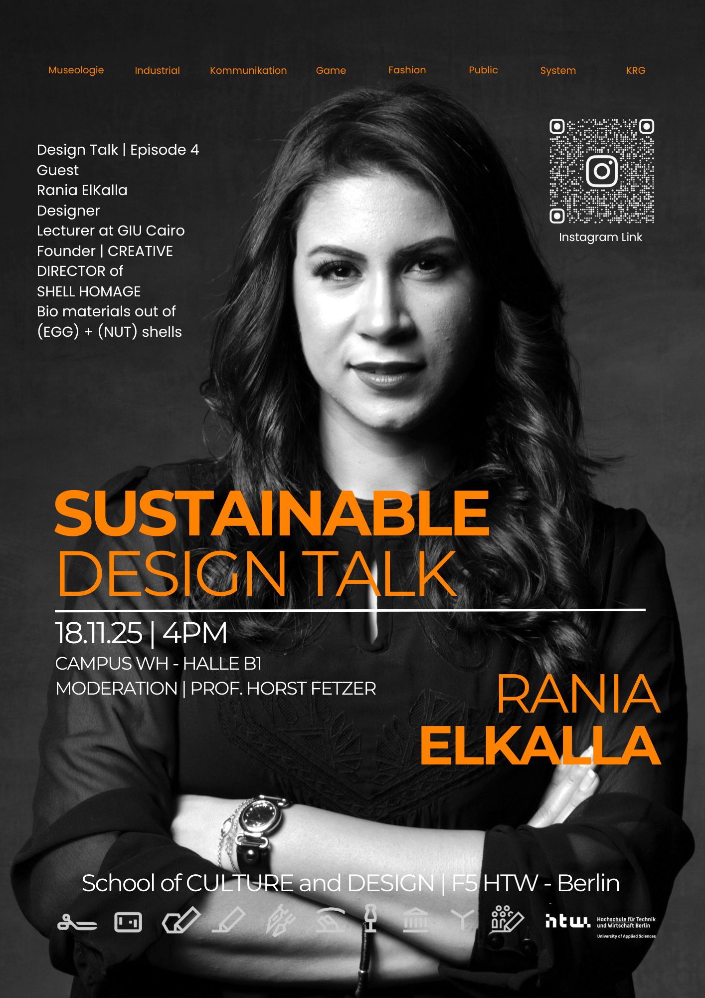 We are delighted to welcome Rania Elkalla - designer, lecturer at the GIU Cairo, and founder & creative director of Shell Homage - to the School of Culture and Design/ HTW Berlin.